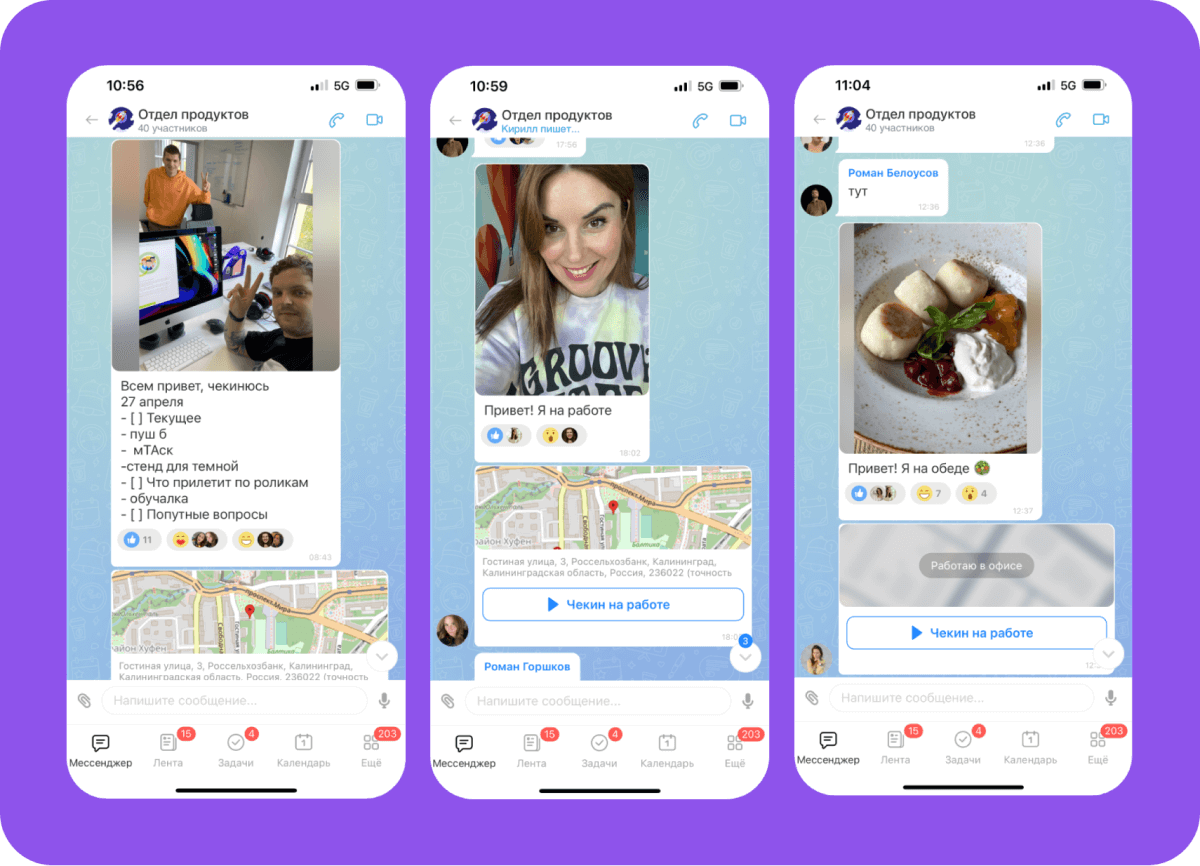 Чекин на работе поднимает команде настроение. Этот ритуал заменяет улыбки и дружеские оффлайн-рукопожатия, а для руководителя это ценная информация – кто и где уже приступил к работе.