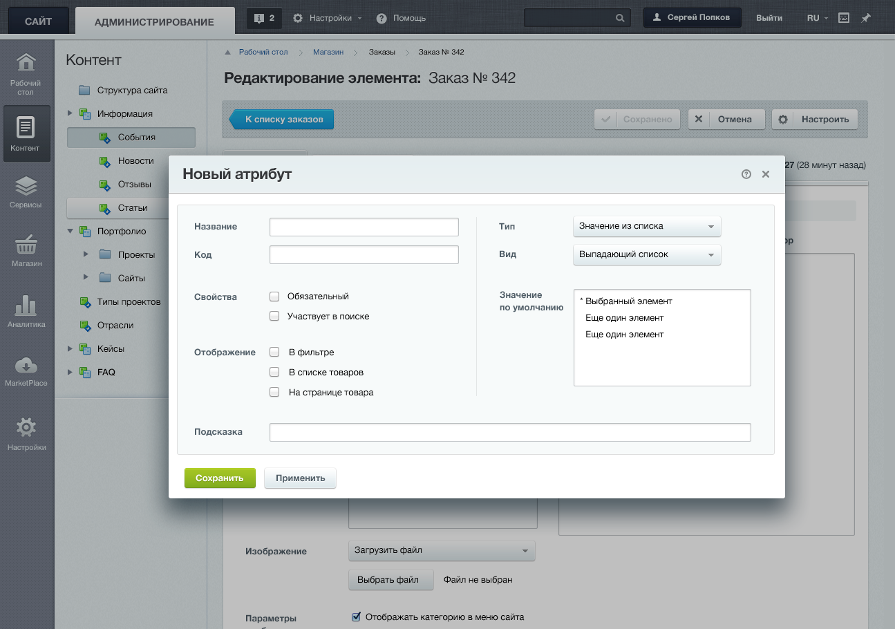 Публикация товарной номенклатуры в каталоге интернет-магазина.