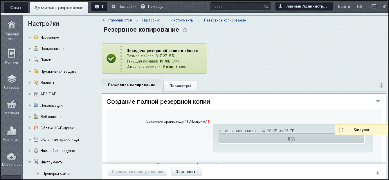 Автоматический бекап в облако «1С-Битрикс»