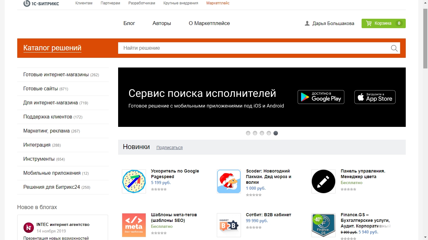 В маркетплейсе вы найдете свыше 2000 готовых решений, от небольших компонентов и модулей до готовых сайтов, интернет-магазинов и информационных систем, разработанных нашими партнерами на платформе 1С-Битрикс. Любое решение из каталога Маркетплейс устанавливается только на продукты 1С-Битрикс: Управление сайтом или Корпоративный портал.