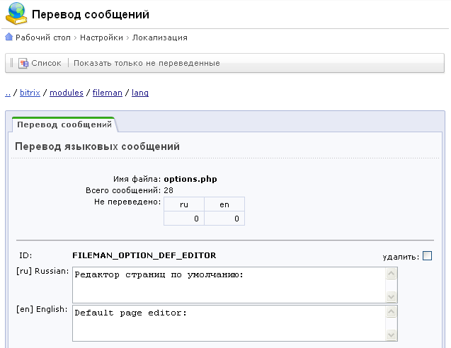 Вы можете выгружать файлы локализации в архивах и загружать обратно. Удобный фильтр покажет, сколько сообщений сайта уже переведено. Для файлов с переводами создаются резервные копии, а также поддерживается возможность найти и заменить повторяющиеся слова сразу во всех файлах.